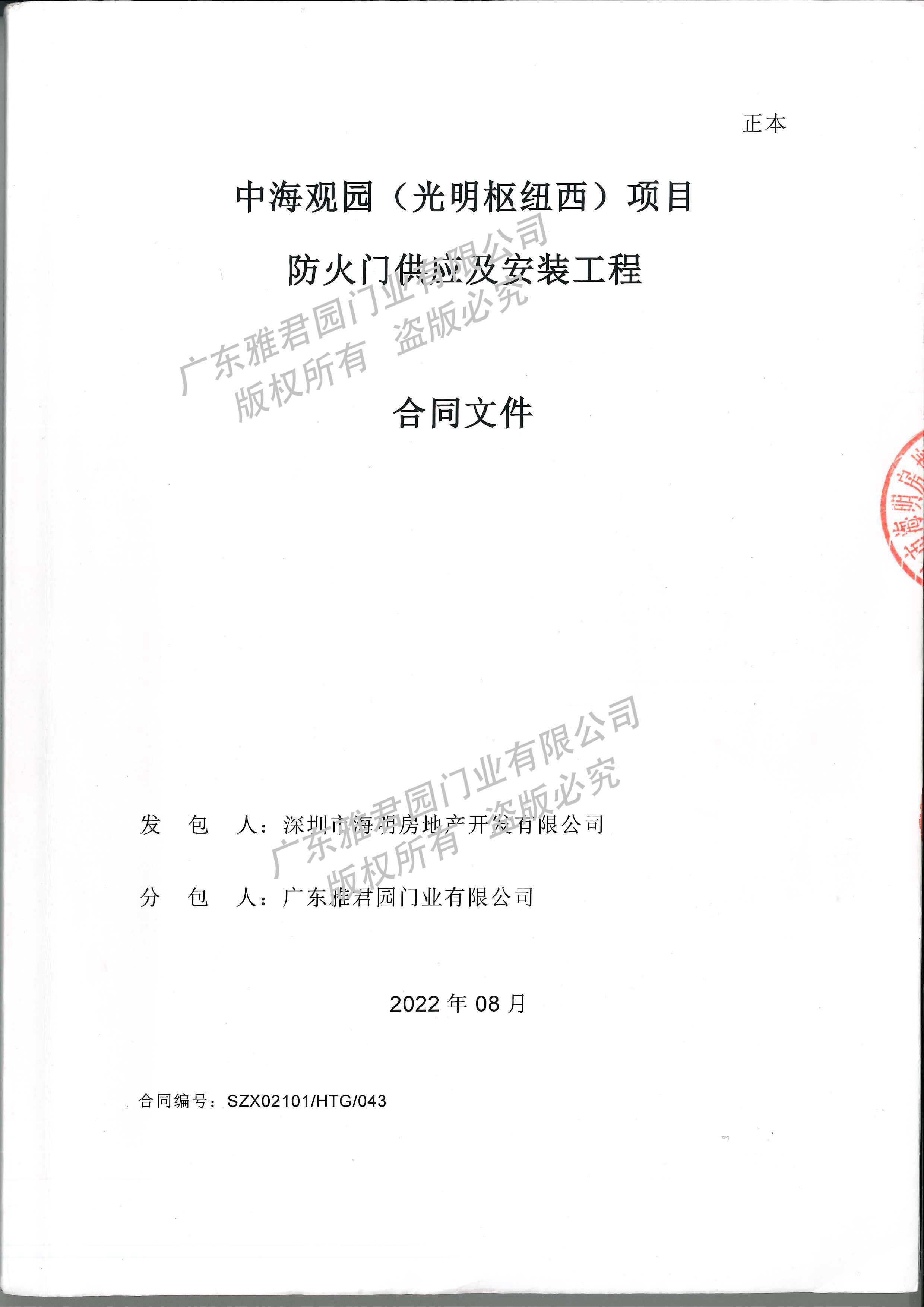 廣東雅君園門業有限公司是專業設計、生產、安裝防火、防盜系列產品的大型股份制企業。雅君園現有廣州、新疆、湖北三大生產基地,公司現有員工800多人,現代化廠房6萬平方米,大批進口設備和生產流水線,計算機網絡管理系統和高素質的管理隊伍,形成了年產20萬樘各類門的生產能力。在廣東省、海南、湖南、廣西、新疆等地具有很高的行業知名度和美譽度。主導產品安裝防火門、防火卷簾門、防火玻璃門、防盜門、防火玻璃構件、防火防盜門、裝甲防撬門、復合防盜門、格柵門、室內門、車庫門、自動伸縮門、自動感應門、防火卷簾電控箱、常開防火門自動關閉控制器、不銹鋼制品和鋁合金制品等十大系列上百個品種。